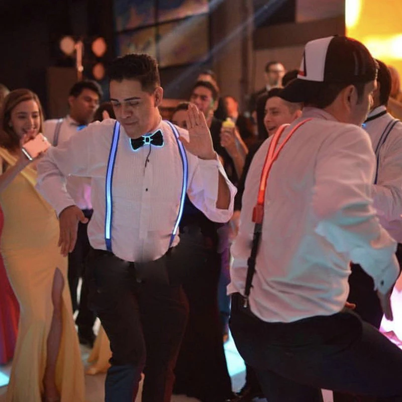 Package includes – 1 Set Of Led Suspender Braces with battery box and controller.