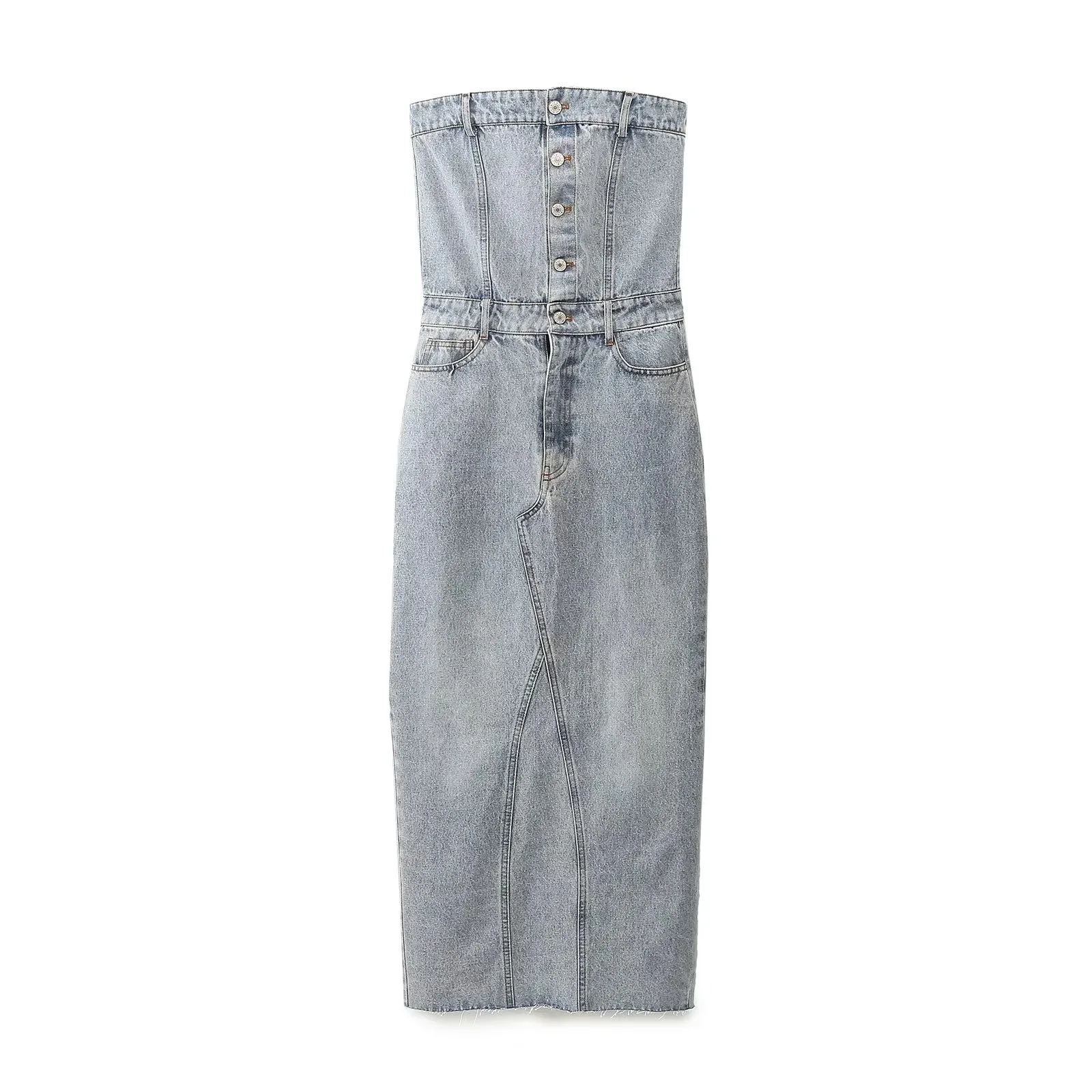 Item Type – Front Split Long Denim Midi Dress