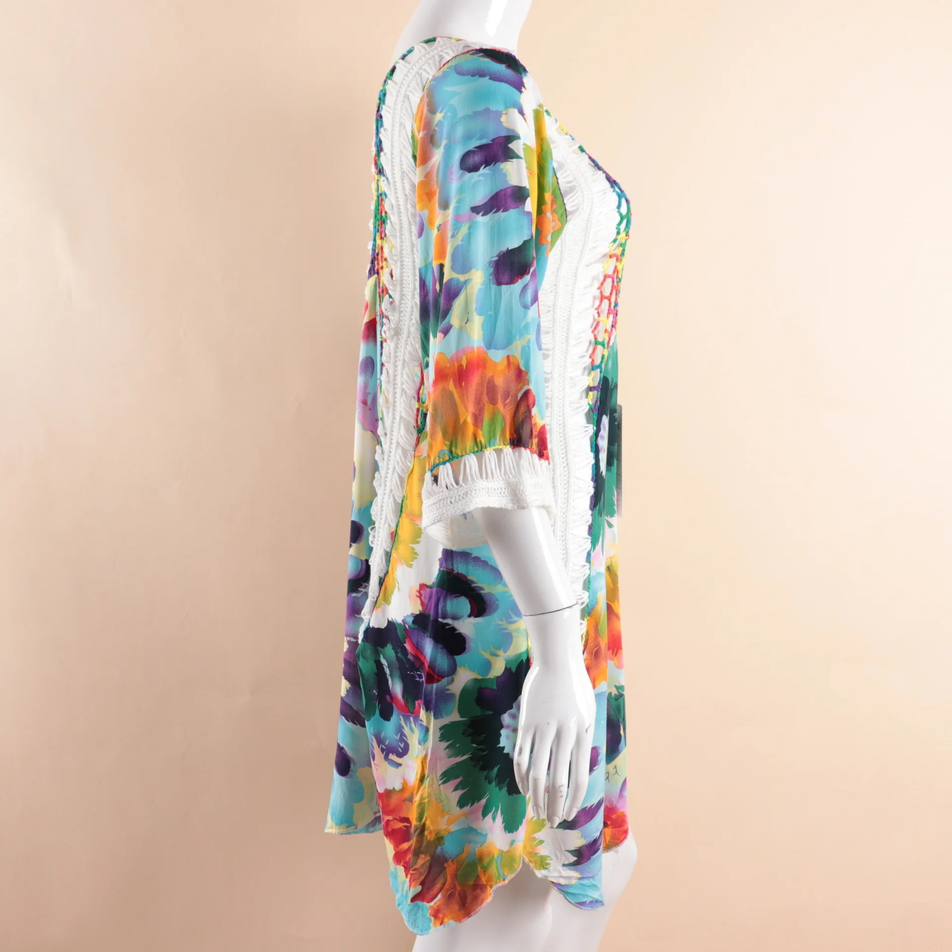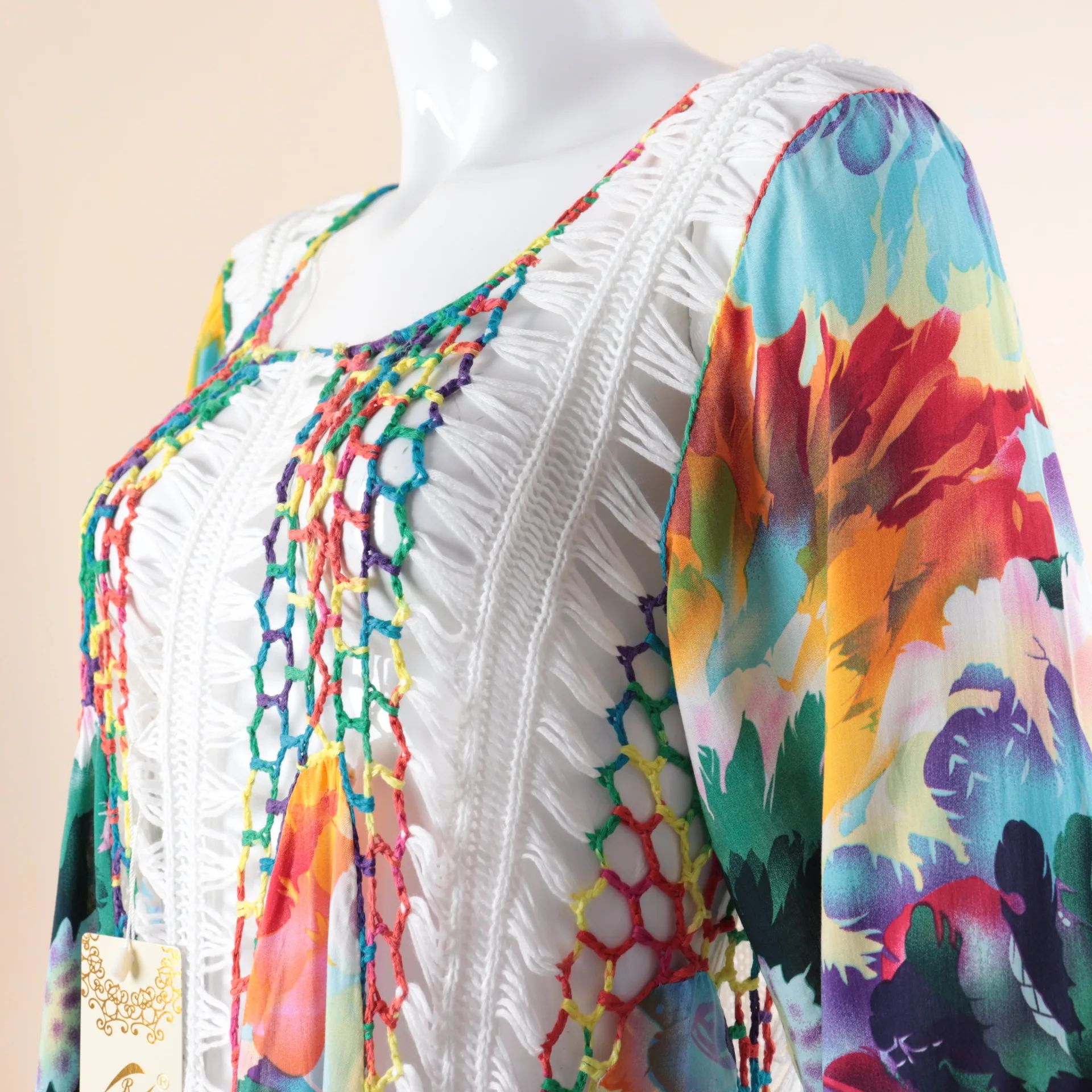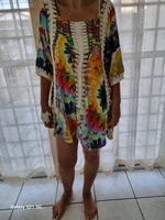 I received it, very fast shipping, beautiful, but it should be longer, I thought of a beach dress but it is a long blouse, you can’t wear it as a dress.