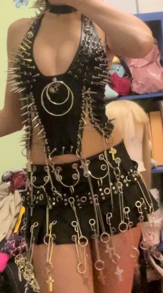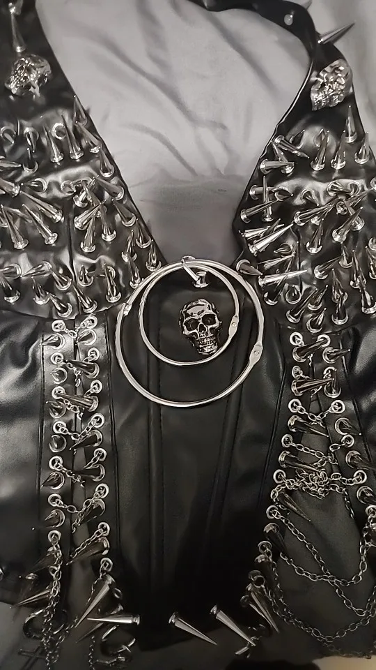 Love the top, delivered quickly, paired with a different skirt from the same seller. Came with string which is nice because if you don’t tie the chains they will continuously stretch open. The back is empty which is probably for the best if you plan on sitting down at all. Fairly heavy but doesn’t feel heavy when you put it on.