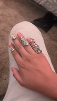 The rings in this collection are very cute. And sizes for each finger. The silver is beautiful. They don’t look cheap at all. Excellent quality.