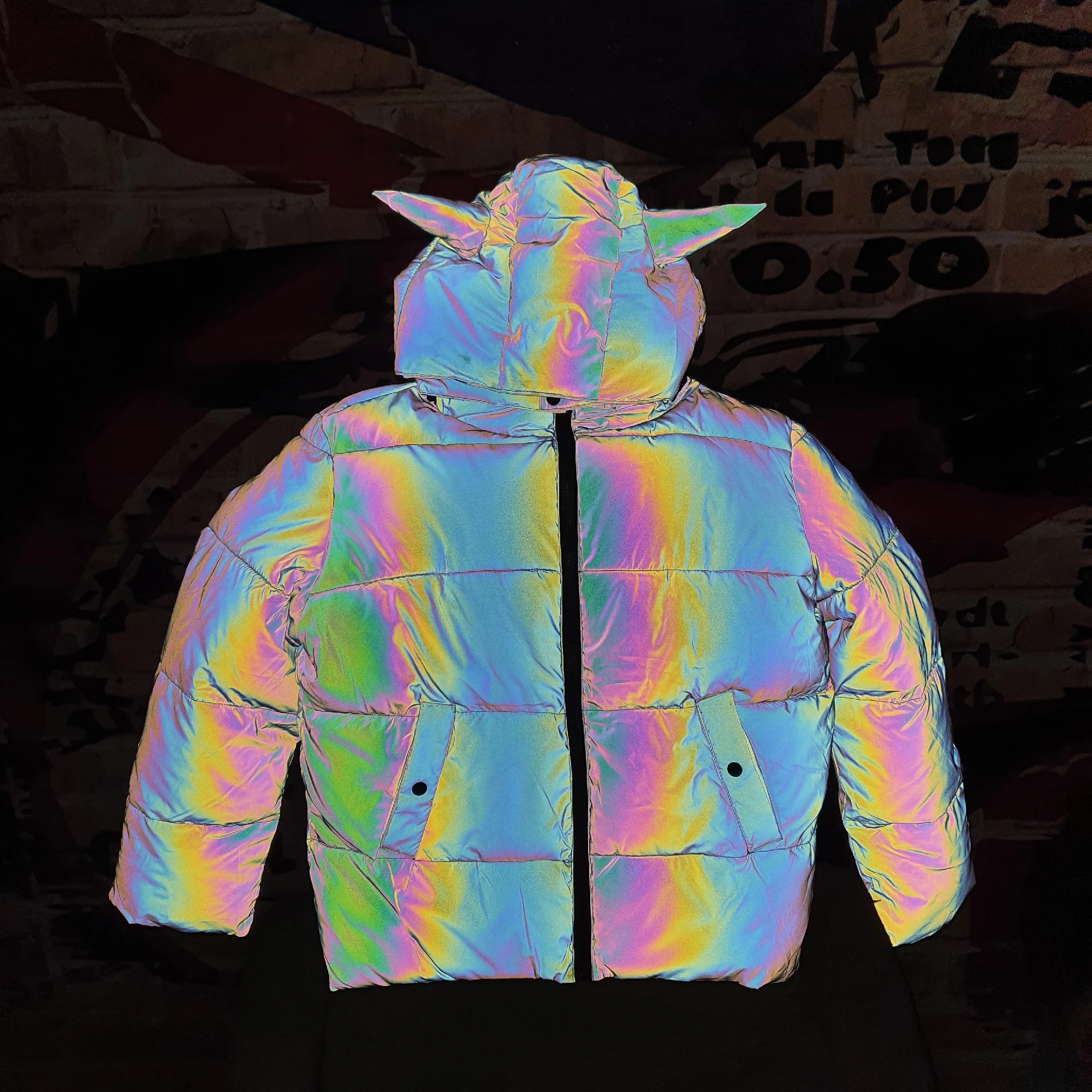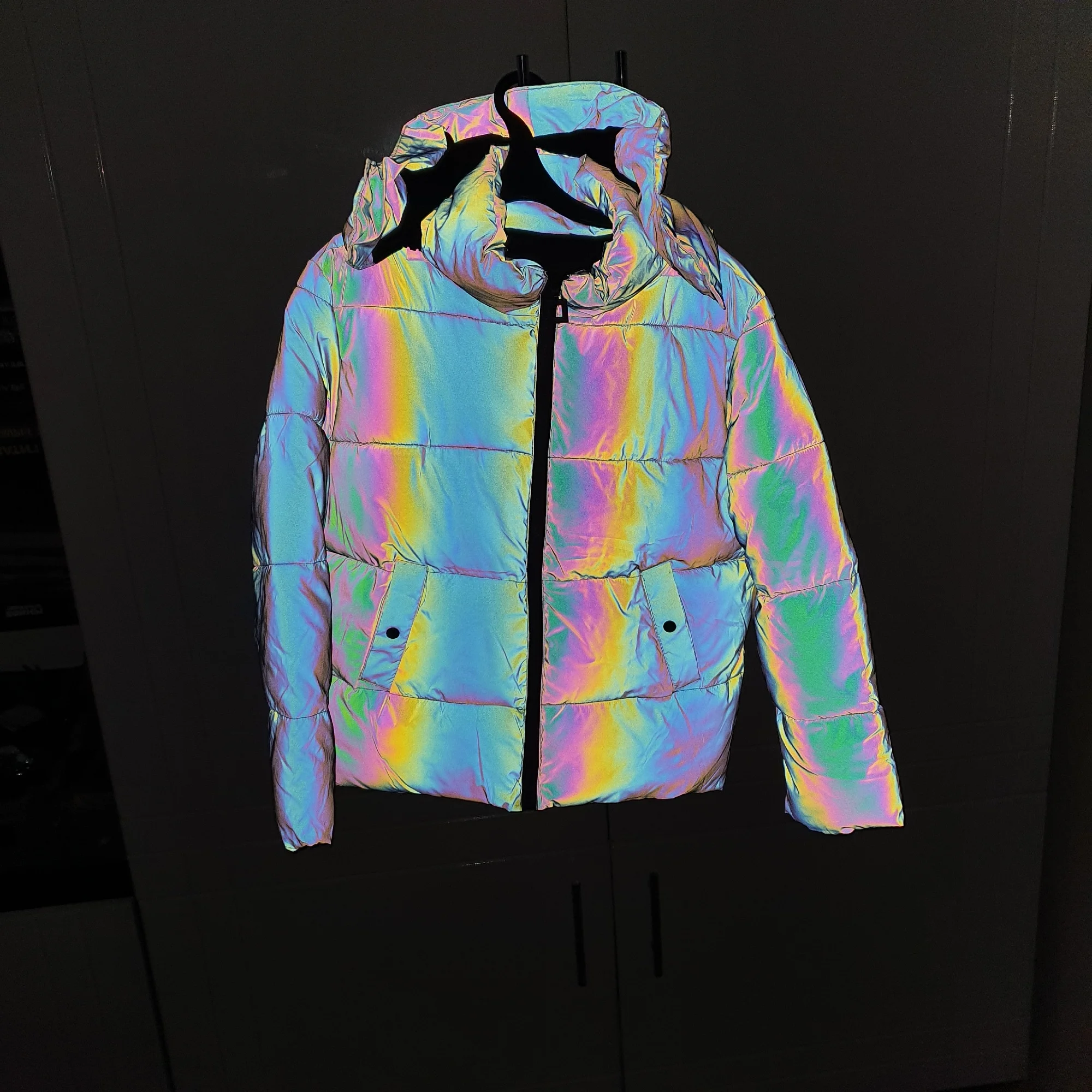 The jacket is awesome! It’s a bit gray during the day. Burns at night!